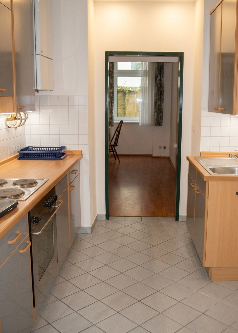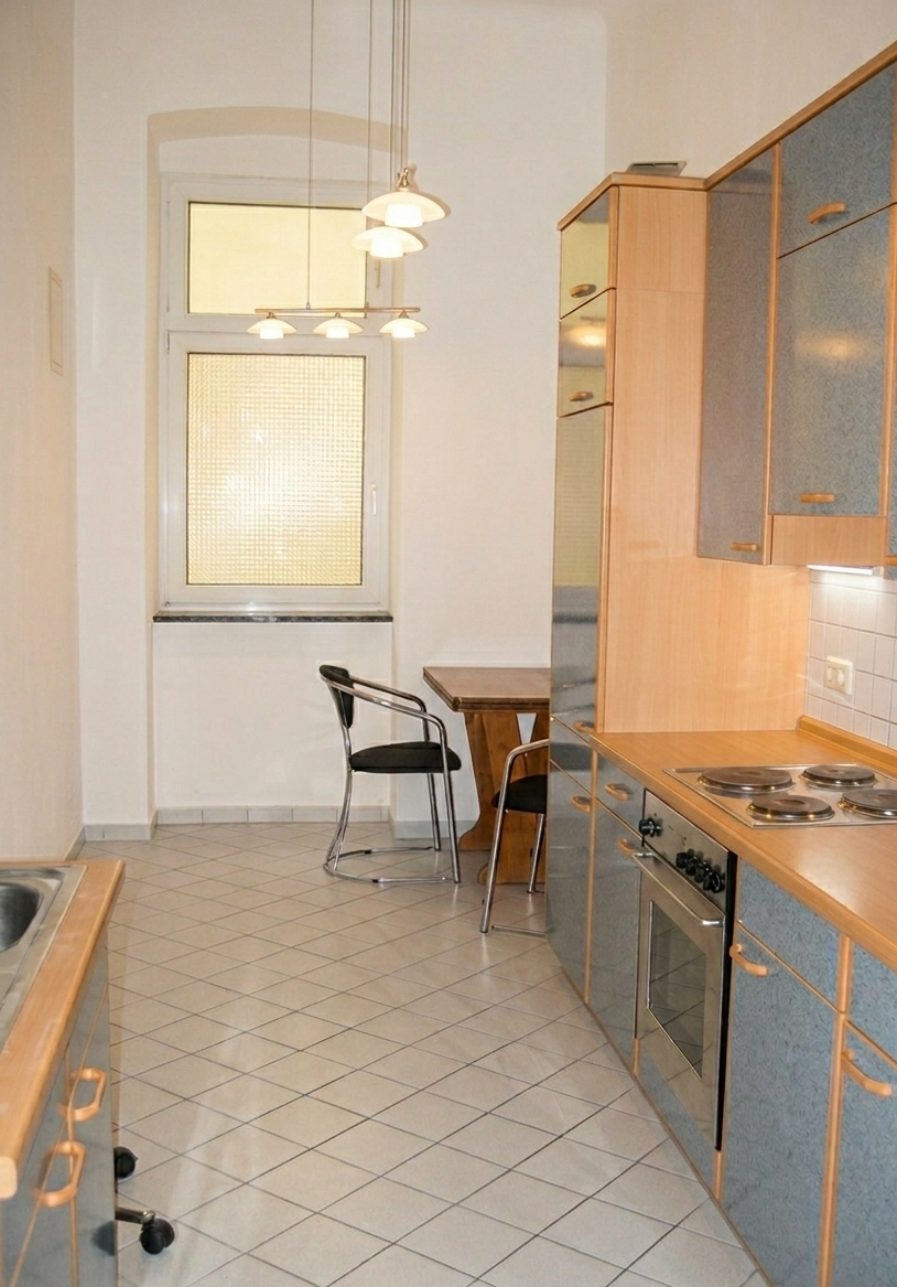 Die Wohnung wurde vor wenigen Jahren komplett saniert, ist mit Thermofenstern ausgestattet und wird mit einer Gasetagenheizung beheizt. Das Mietobjekt wird gepflegt möbliert übergeben, die Möbel können NICHT entfernt werden. Die Einbauküche ist mit allen Geräten des täglichen Bedarfs ausgestattet. Die Wohnung wird nur an eine Einzelperson OHNE Haustiere vermietet.