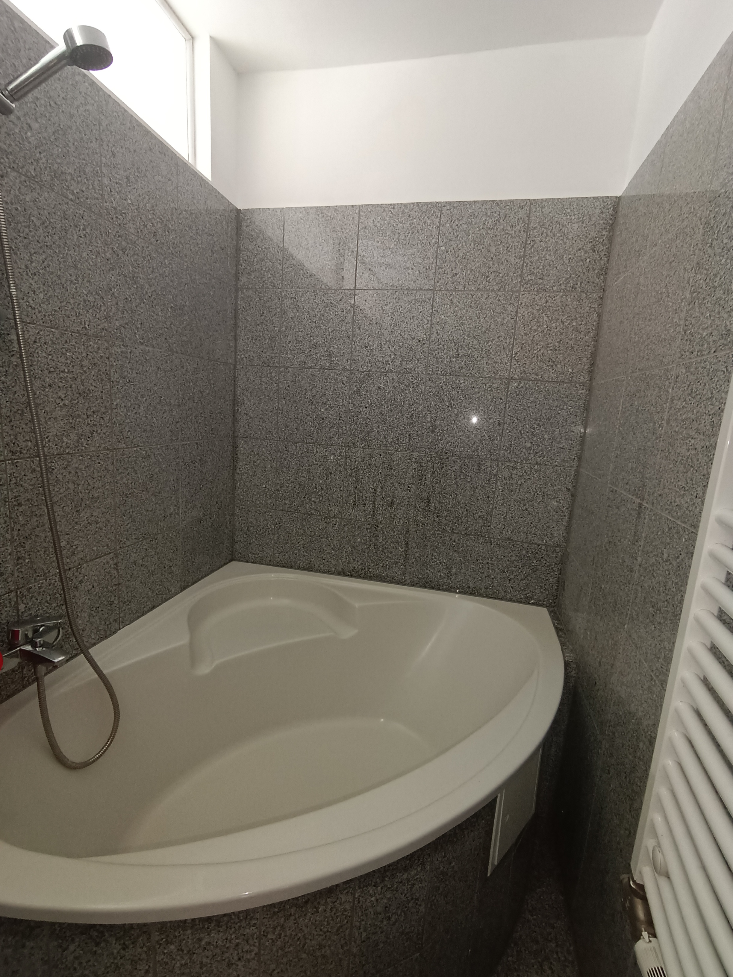 – Badezimmer mit Eckwanne und Waschmaschinenanschluss