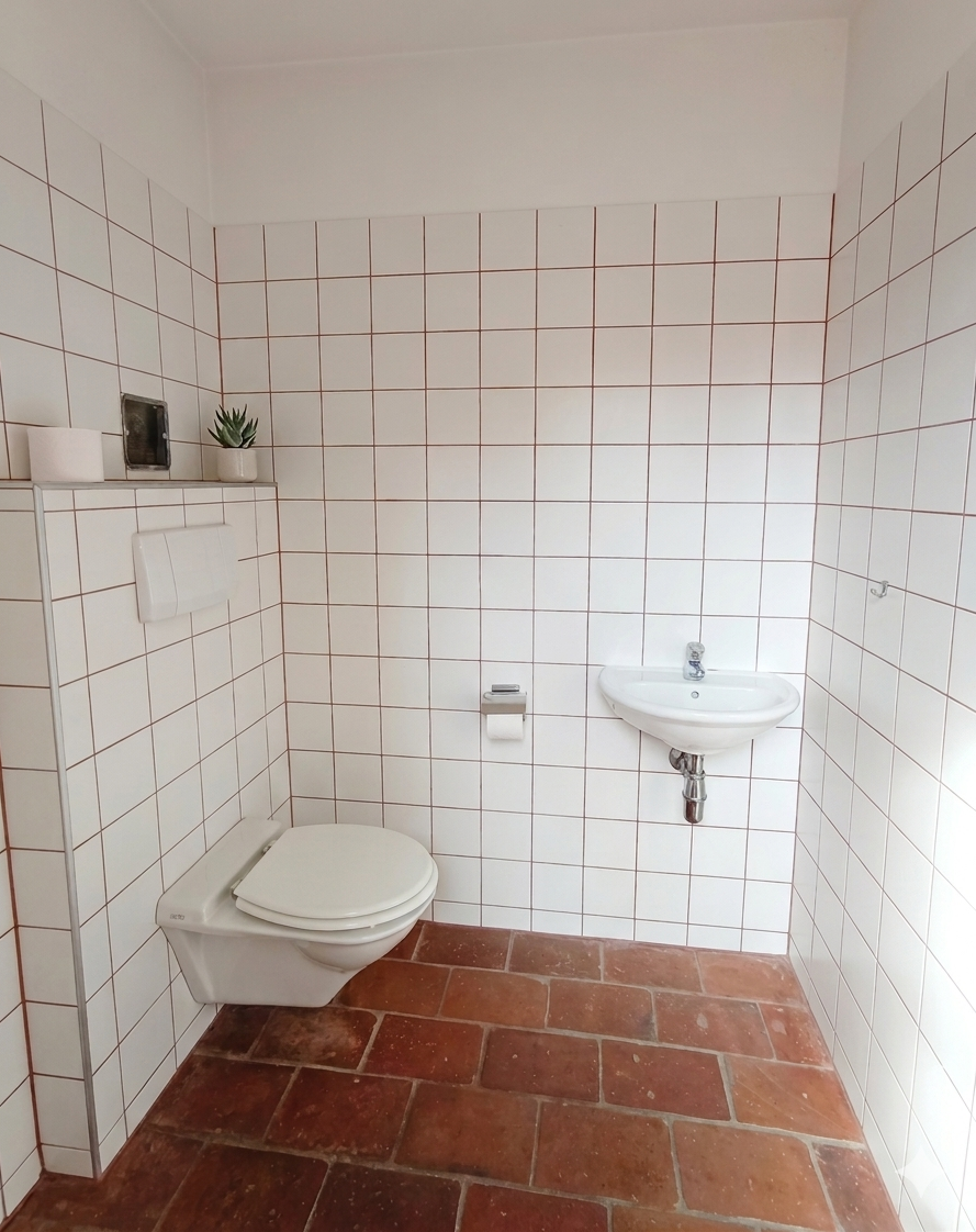 – WC mit Handwaschbecken getrennt vom Badezimmer begehbar